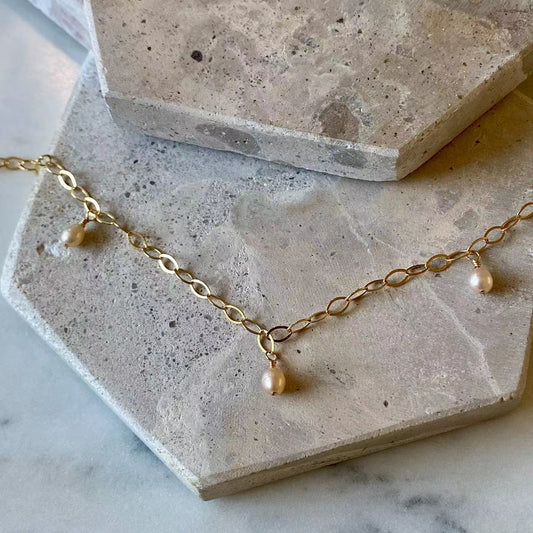 Romance - Freshwater Pink Pearl Station 14K Gold Filled Oval Link Bracelet
