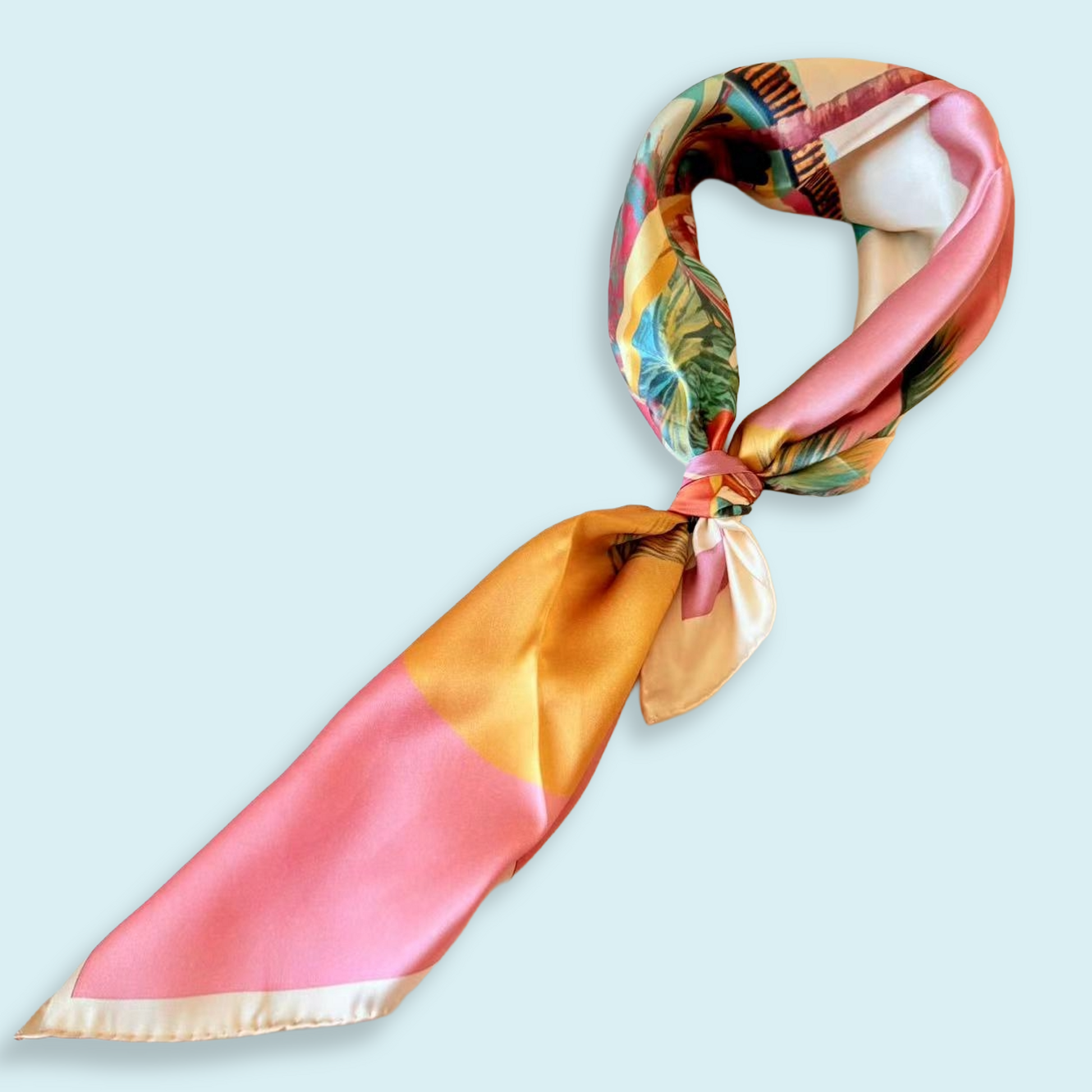 Elevate your style with this 100% silk square scarf, measuring 70 by 70 cm. Crafted with luxurious satin weaves, it features an exquisite 1960s beach design that adds a timeless, elegant touch to any outfit. Perfect for a sophisticated look, this scarf combines softness and sheen, making it a versatile accessory for day or evening wear. 🌊✨🧣